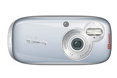 - Цифровая Камера Disney Pix Click(TM): Загруженная многочисленными опциями, эта камера имеет 1" цветной LCD экран, VGA цифровое разрешение (640x480), память для 200 фотографий, 2X кратный цифровой zoom, встроенную авто вспышку, ТV выход (NTSC/PAL совместимый), требует 2 AA батареи (не включены). Disney Pix Click оборудован ремешком, программным обеспечением Disney Pix(TM) на CD-ROM, USB шнуром и 2 взаимозаменяемыми лицевыми пластинами с элегантной характерной графикой. ($ 49.99)