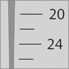 Используем новую диаграммы разрешений 'версии два', которая обеспечивает измерение разрешения до 4000 LPH (линий в высоту). Оценка 20 эквивалентна 2000 LPH.