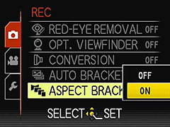 | Имеются оптический и электронный видоискатели, доступные для LX5. Камера автоматически обнаруживает EVF, но, если Вы хотите установить оптический видоискатель (24mm в эквиваленте), Вам нужно сделать так, чтобы камера узнала от этом через эту заказную функцию. | LX5 имеет универсальный мульти-форматный CCD сенсор, и одну из наилучшим образом запрятанных заказных опции – брекетинг форматов, где серия кадров автоматически захватывается в различных форматах. |