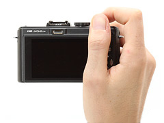 LX5 – маленькая камера, но весьма комфортабельная в удерживании и использовании, благодаря хорошему размеру (для своего класса) резинового захвата. Мы, несомненно, не хотим называть его 'надежным’, но он обеспечивает более великолепное приспособление, чем гладкое полу-матовое металлическое оформление Canon S95, это означает, что камерой можно комфортабельно управлять одной рукой.