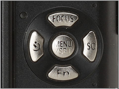 Panasonic упорствует в раскраске четырех-стороннего контроллера функциями прямого доступа, используя только оттиснутые формы. При плохом освещении не всегда легко разобрать, что эти кнопки в действительности делают. |