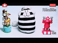 | Или если Вы предпочитаете, Вы можете избавиться от всех экранных помех (за исключением выдержки/апертуры в режимах PASM) для более ясного обзора. | В видео режиме экран обрезан в формате 16:9, и, как только начинается съемка, появляется таймер обратного отсчета. |