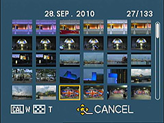 | 'Уменьшение zoom' вызывает мозаичный обзор из 12 маленьких изображений... | ...еще один толчок вызывает 30... |