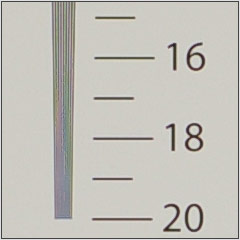 Изображения с Pentax K100D и Canon EOS 350D имеют вторую версию диаграммы, изображения с Nikon D50 имеют первую версию. Единственное различие в этих сравнениях - относительный размер шрифта и факт, что горизонтальное разрешение 'до 2000 LPH' во второй версии идет слева направо, и справа налево в первой.