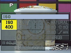 | Пример детального информационного дисплея, который обеспечивает резюме текущих установок камеры и экспозицию. | Нажмите кнопку ОК для доступа к любой показываемой установке, передвигайтесь по экрану с помощью 4х кнопочного контроллера и снова ОК для изменения. |