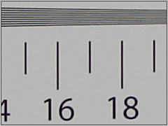 Разрешение не самое лучшее из камер этого класса - Panasonic FZ8, в частности, просто забивает ее - и имеется некоторая видимая муаровость на более высоких частотах, но Вы можете получить лучше результаты при использовании RAW. Если Вы откроете полную диаграмму разрешении, то при 100% увеличении сможете ясно увидеть, и хроматические аберрации и фиолетовую окантовку.