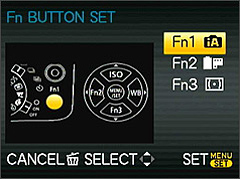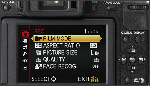 | GH2 обеспечивает такой же режим Интеллектуального Разрешения, что и близкая по разрешению G2. Проще говоря, он предназначен для обнаружения и увеличения резкости по краям при одновременном использовании сокращения шума, чтобы сохранить плоские области гладкими. | Три кнопки Fn в GH2 (одна на верхней панели, две на 4-х стороннем контроллере), на каждую может быть назначено никак не менее 18 возможных опций - предлагая замечательную степень настройки. |