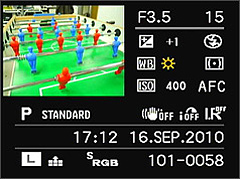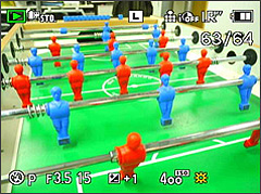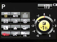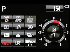 Третий дисплейный режим LCD экрана - интерактивный статусный дисплей, который Panasonic называет 'режим Статусной панели', показывающий список ключевых установочных параметров, которые могут быть изменены либо прикосновением, либо с помощью кнопок навигации GH2. Особенно нам нравится виртуальное колесико компенсации экспозиции, которое хорошо подходит для сенсорных манипуляций.