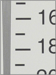 H5, со своими дополнительными миллионами пикселей, предлагает небольшое преимущество в разрешении по сравнению с H2, которая предлагает тоже превосходные результаты, благодаря специфическому объективу. Это говорит о том, что так как и разрешение H2 превосходно, то это скромное увеличение помещает H5 почти на вершину класса (Panasonic FZ30 все еще лидирует здесь, но с объективом в два раза больших размеров и еще одним миллионом пикселей в распоряжении, так что так и должно быть). Результаты H5 здесь очень внушительны, и замечательно ясные даже на самых высоких частотах, с только едва различимыми искажениями при приближении к исчезновению. А в общем - не плохо.