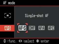 Джойстик (выбор области AF) Если область AF установлена в 'выборе области Фокусировки', Вы можете использовать джойстик, чтобы выбрать любую из девяти AF областей. |
