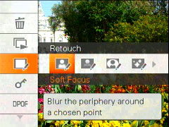 | Новое для H9 - набор встроенных эффектов к изображению (под пунктом меню 'ретуширования'). Здесь Вы можете применить мягкое виньетирование фокуса, преобразование изображения в черно-белое, удаление эффекта красных глаз и добавление 'перекрестного фильтра' или эффект рыбьего глаза. Инструменты практически симпатичны - если Вы любите такие вещи. | |