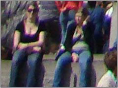Все супер zoom камеры страдают от некоторой цветной окантовки (хотя технологическая обработка Panasonic удаляет ее прежде, чем Вы разглядите, что это), а предшественница этой камеры (H5) была самым плохим образчиком. H9, кажется, также плоха, и это довольно распространено по краю кадра при съемке в широком конце zoom и на высоко контрастных участках. Необычно то, что мы нашли фиолетовую окантовку даже там, где край был не особенно высоко контрастным (см. пример ниже). Имеется также довольно сильная хроматическая аберрация на всех фокусных расстояниях (хотя наиболее очевидна она при более длинном zoom), но, если быть справедливым, это тяжело увидеть на нормальных отпечатках, поскольку окантовка в большинстве кадров шириной всего несколько пикселей. Эта проблема окантовки – связано ли это с объективом или с ПЗС - является тем, что Sony, действительно, нужно принять к сведению в будущих моделях.